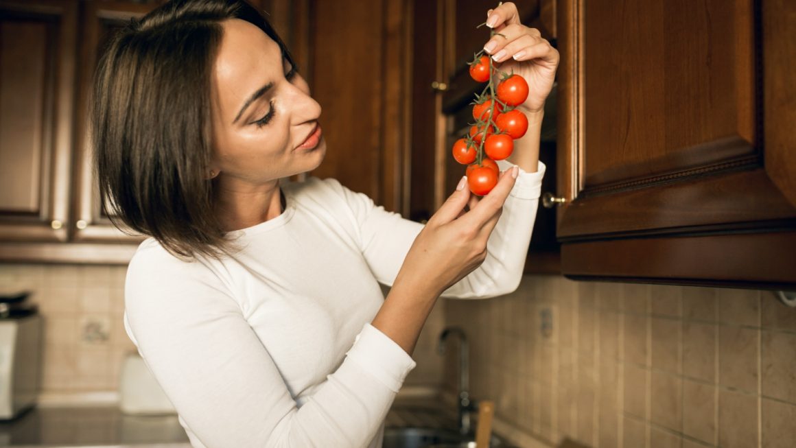 Triturar un poco el tomate, echarle las hojas de albahaca y freirlo a fuego lento, removiendo poco a poco, hasta que quede consumida la mayor parte del líquido.