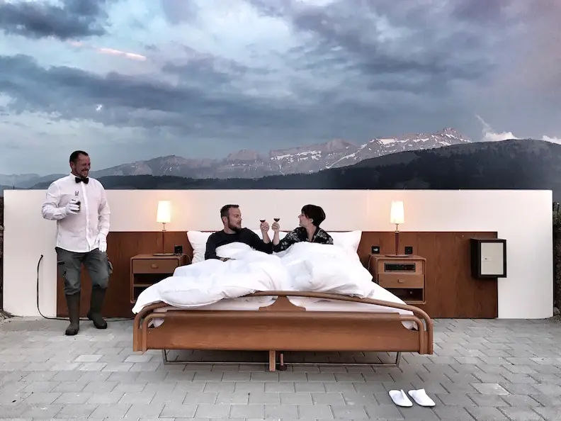 Un nuevo concepto de los hermanos creadores de Null Stern Hotels redefine la experiencia hotelera minimalista. No hay paredes ni edificio de hotel. Lo que ofrece es una cama con un par de mesitas de noche y lámparas. Pero lo que realmente paga es la increíble vista que se obtiene al dormir en la ladera de una montaña suiza, sin techo ni paredes que lo encierren.
